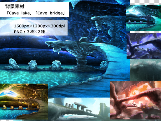 ■背景素材【Earth】 ゲームや動画の背景、壁紙等に利用して頂ける画像データです。 画像:PNG3枚×2種類 :横1600×縦1200px×300dpi ・「Cave_lake」 3枚 ・「Cave_bridge」3枚 ■シリーズ【Earth】 ■ご利用につきまして ロイヤリティフリー(RF)です。 ・画像の改変加工、可 ・成人向け作品での使用、可 ・商業使用、可(クレジット表記は任意) ★禁止事項 ・素材としての譲渡、転売、再配布 ----- 2021.8.25. 海園(D販部)サンプル